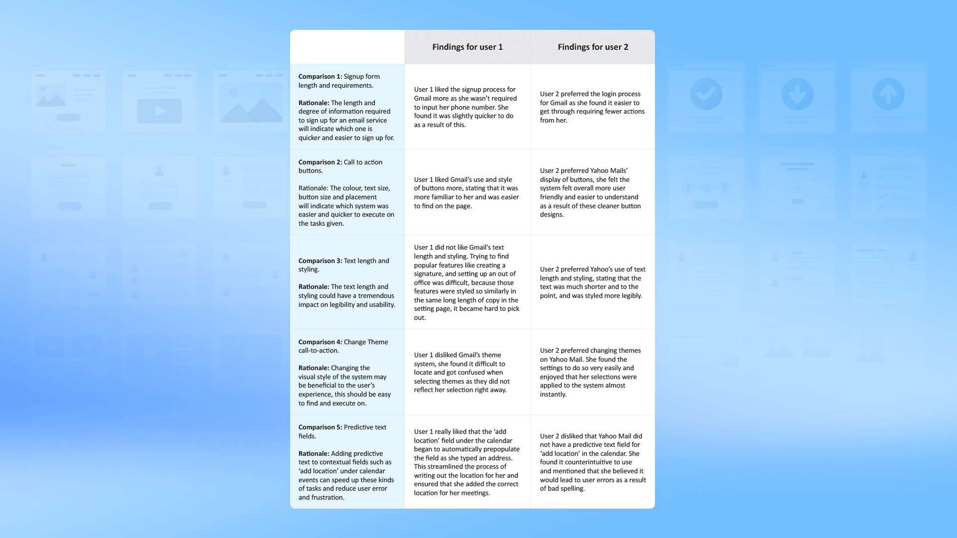 Multivariate Testing allowed me to test different versions of the same functions on the two systems, in order to draw a comparative view. These tests exposed deep insights into how users interact with the system and what they expect from it, using this information I was able to apply my learnings to the wireframe designs later on.