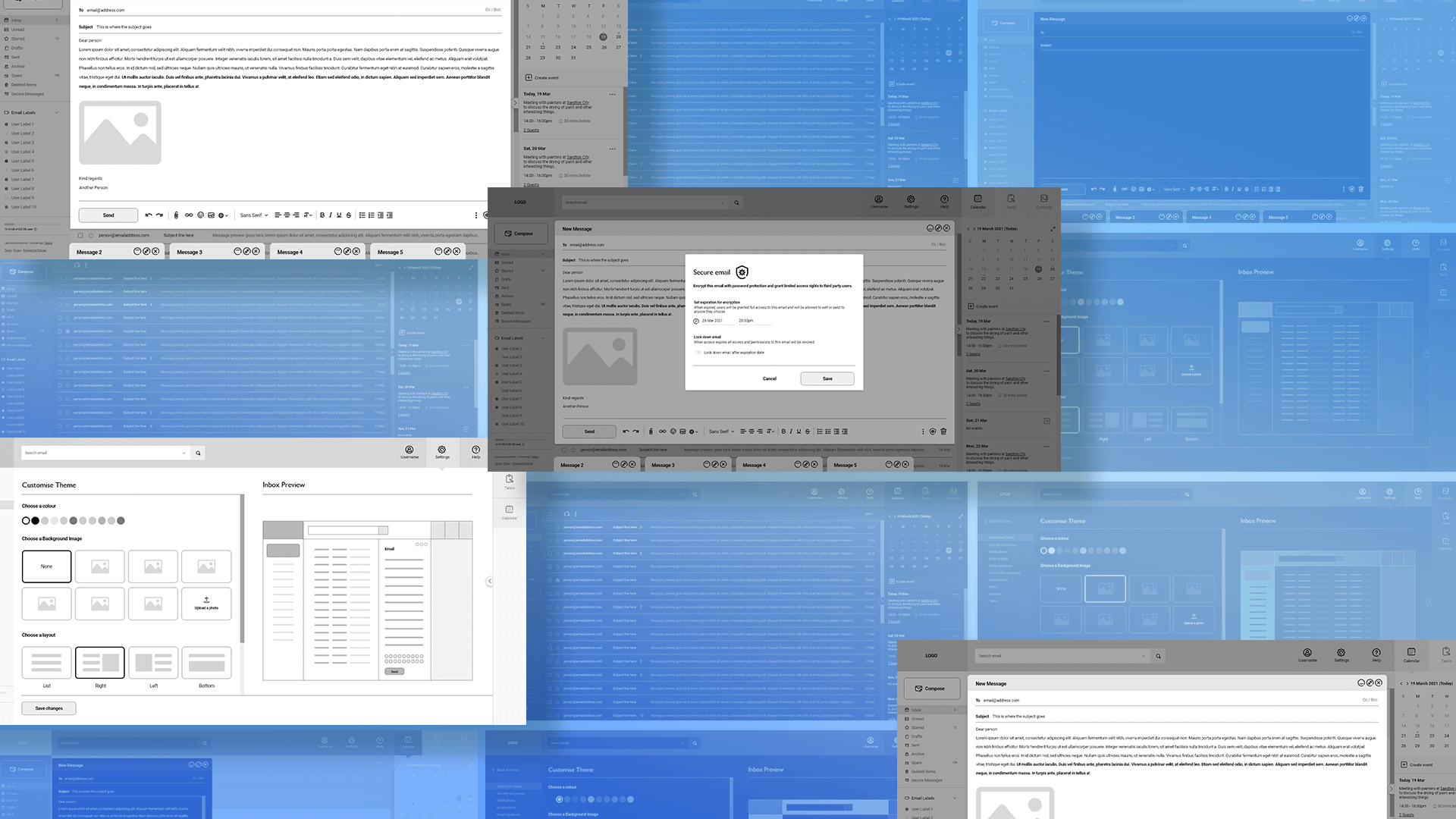 Simplifying the journey for the user by adjusting the size, iconography, and positions of calendar events, tasks, and contacts tools. Simplifying the journey for theme customisations and making it easier to find, understand and use. I addressed some of the stakeholder’s security objectives by modifying the security functionality on emails. Additionally, I worked on the ‘secure email’ wording and layout to make it more understandable to the user as this was initially found to be confusing.