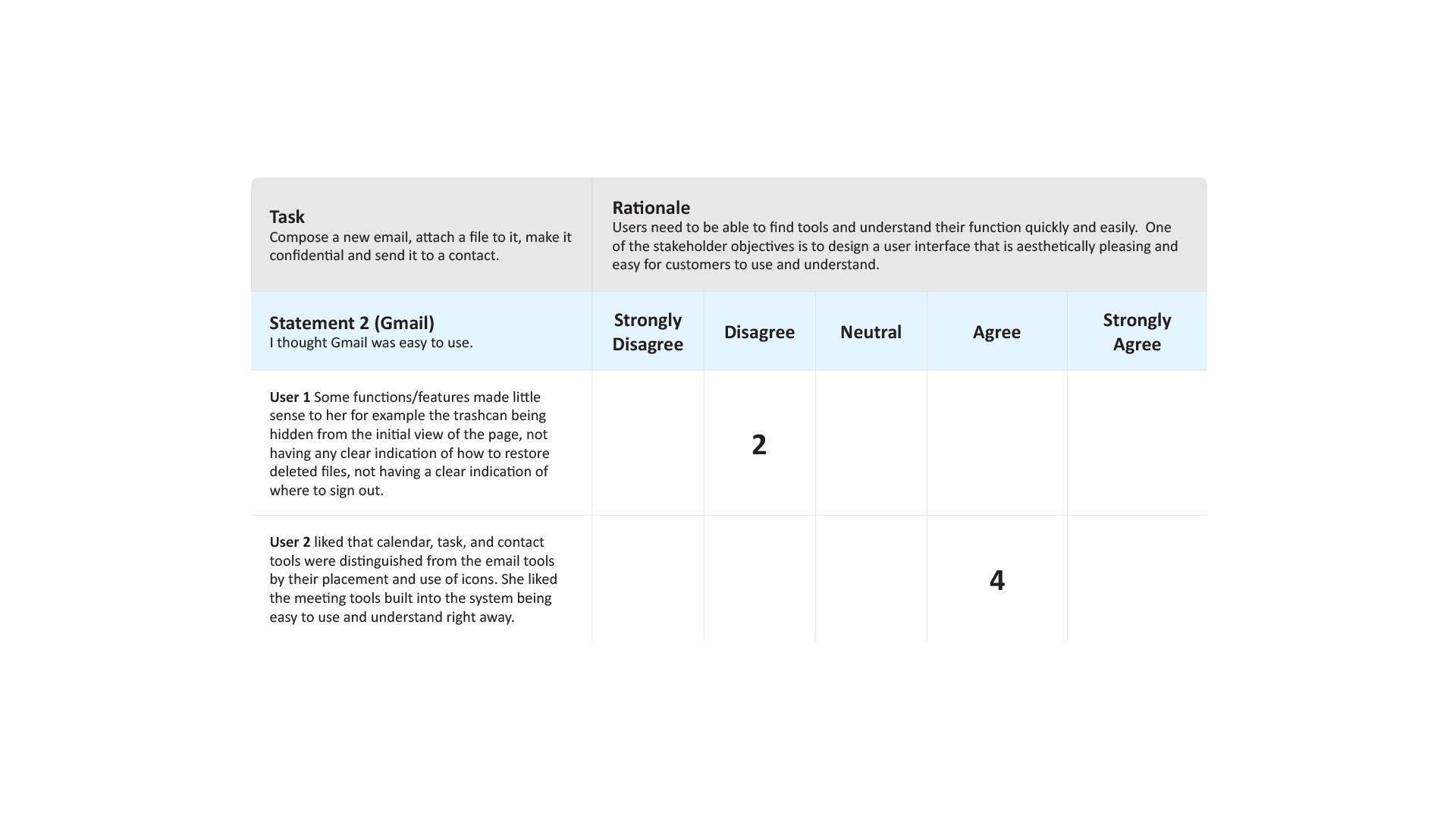 SUS allowed me to determine the level of usability of C-Mail by drawing comparisons between the Gmail and YahooMail systems and measuring those comparisons against the Likert scale.